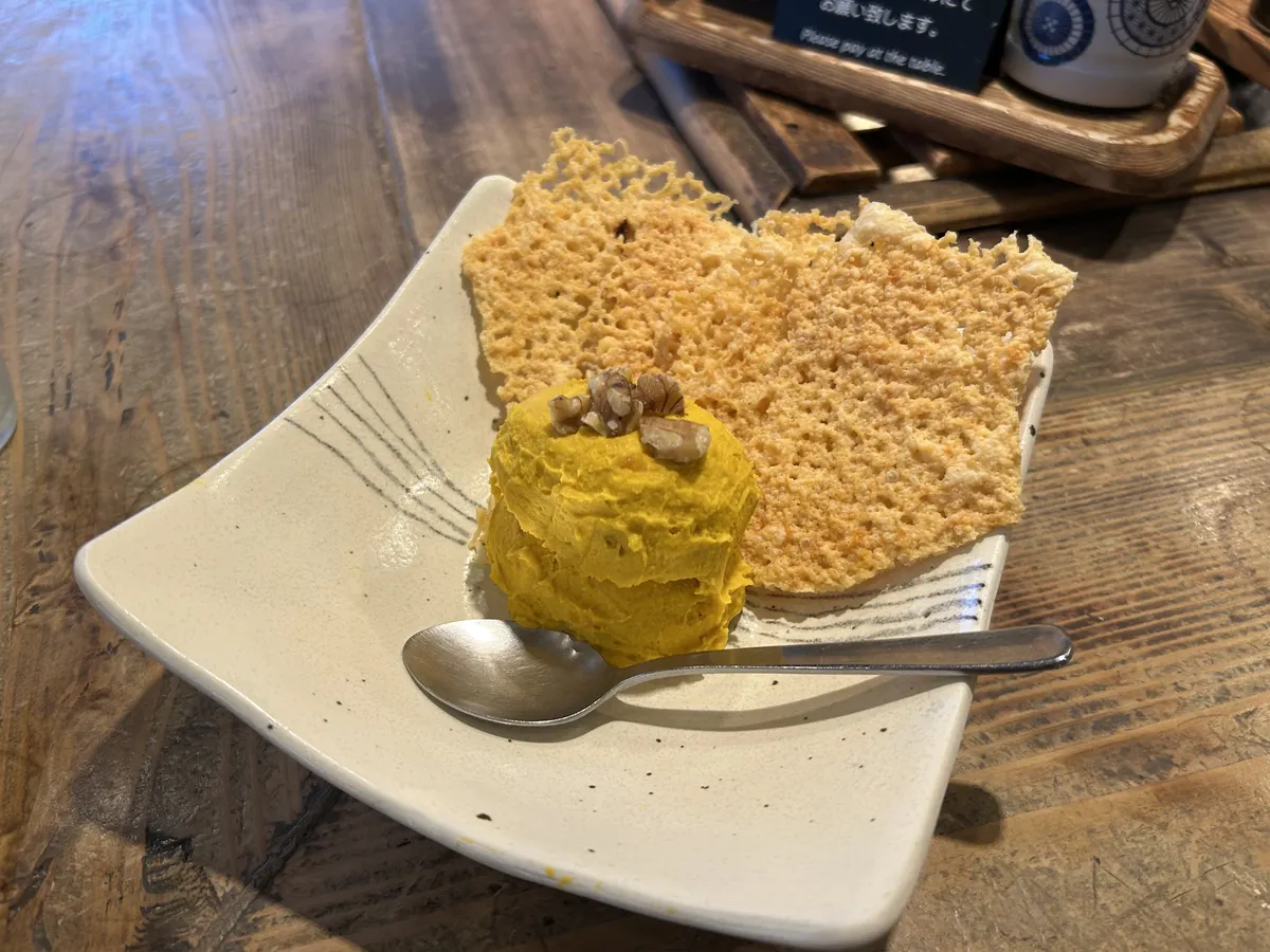 チーズせんべいと甘いカボチャクリームが、日本酒飲んでると料理の間に食べるちょうどいいちびちび系