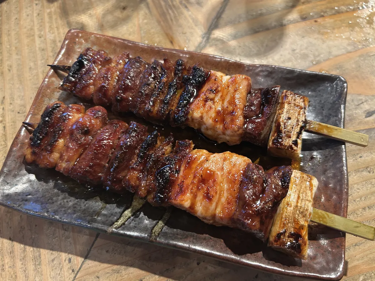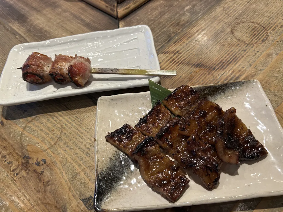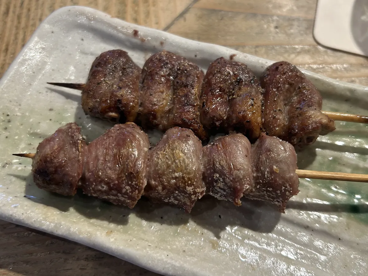 そしてレバー、ハツモト、ハツ、砂肝、つくね梅しそ&くるみ味噌、トマト肉巻き&豚漬けあぶりと焼きを…