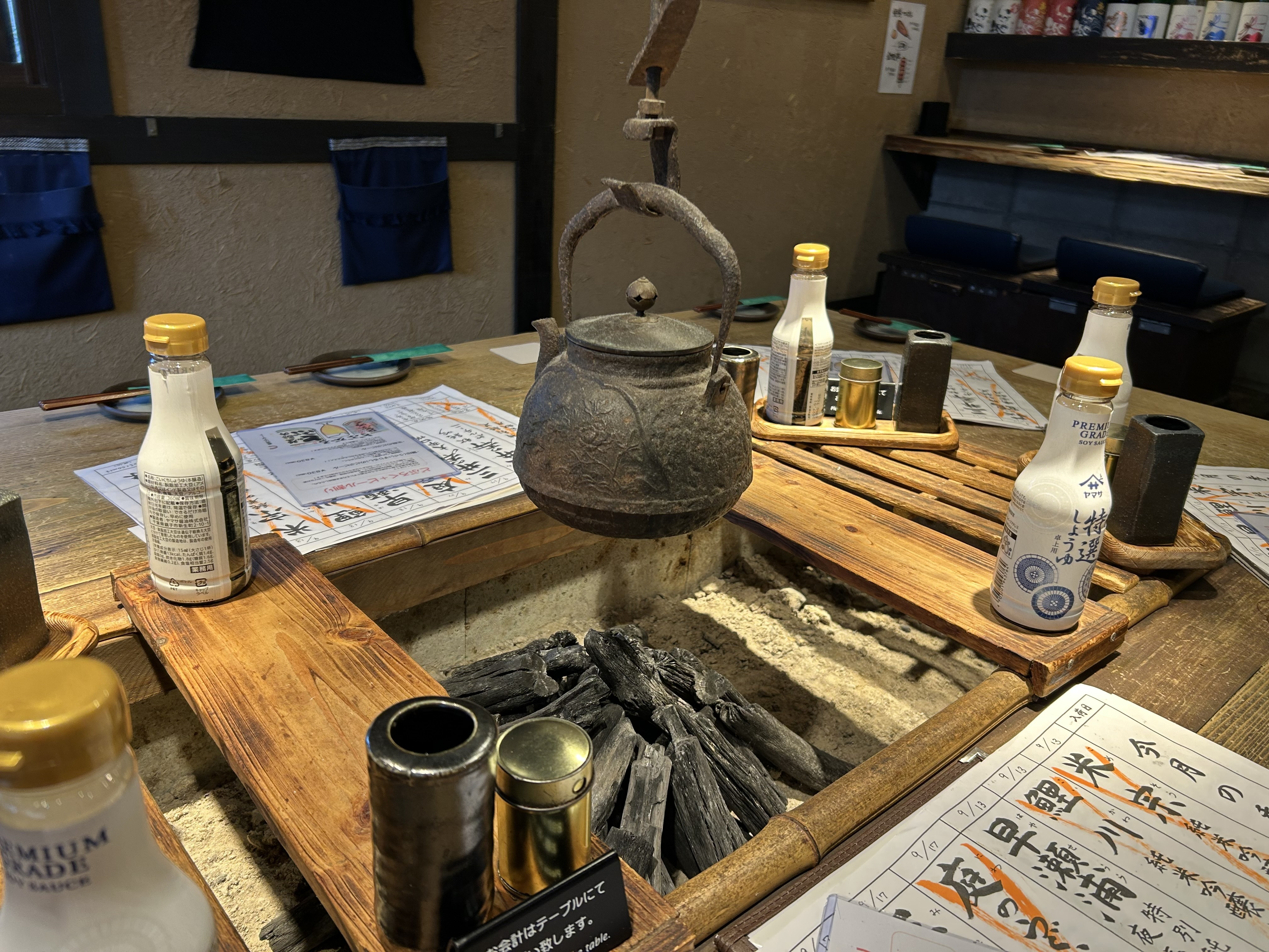 テーブルでもカウンターでも空いているとは言われましたが、やはりこの囲炉裏を囲んで…