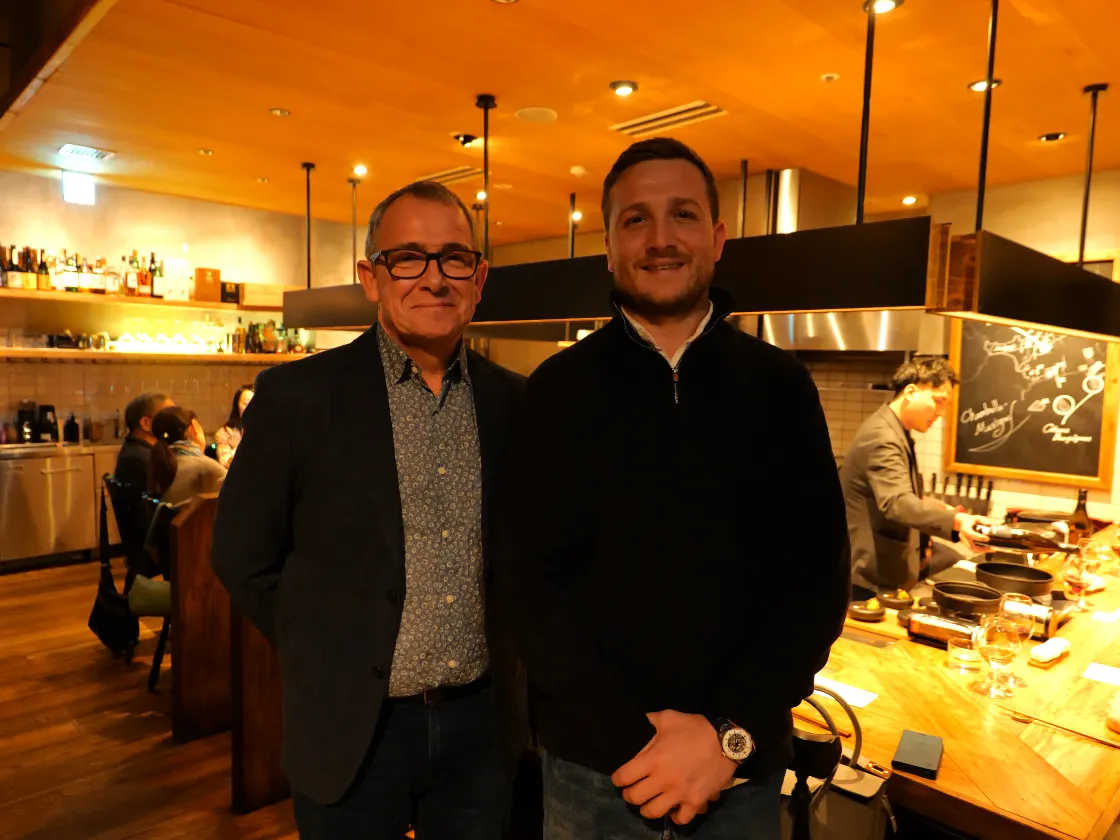 十番 無鴨黒では「最上鴨」をベースにフレンチの感性を取り入れた中華スタイル「ヌーベルシノワ」が大きな特長ですが、この日はフランス・ブルゴーニュ地方シャンボールからワイン生産者ユドロ・バイエの造り手である現当主ドミニク・ル・グエン氏とその後継者である息子、タンギ・ル・グエン氏を迎えて一夜限りのメーカーズディナー。