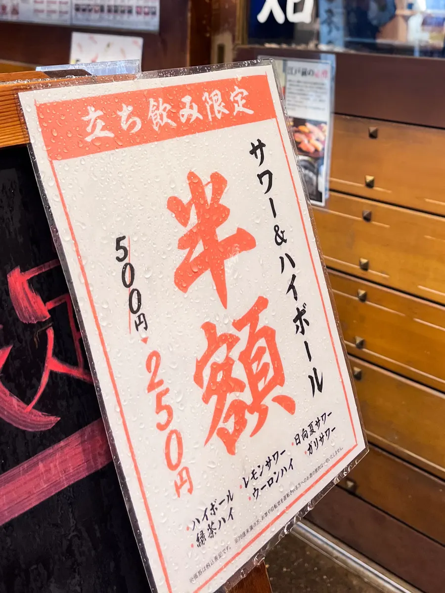 立ち飲みだとサワー&ハイボールが半額とのこと。