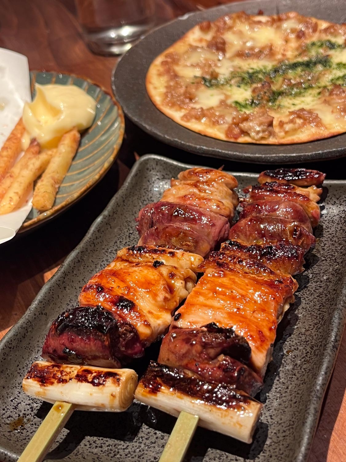 焼き鳥やお刺身を中心に、ピザやフライドポテト、デザートまでメニューがとても充実。子どもにも優しいラインナップで、家族で安心して楽しめるお店でした。