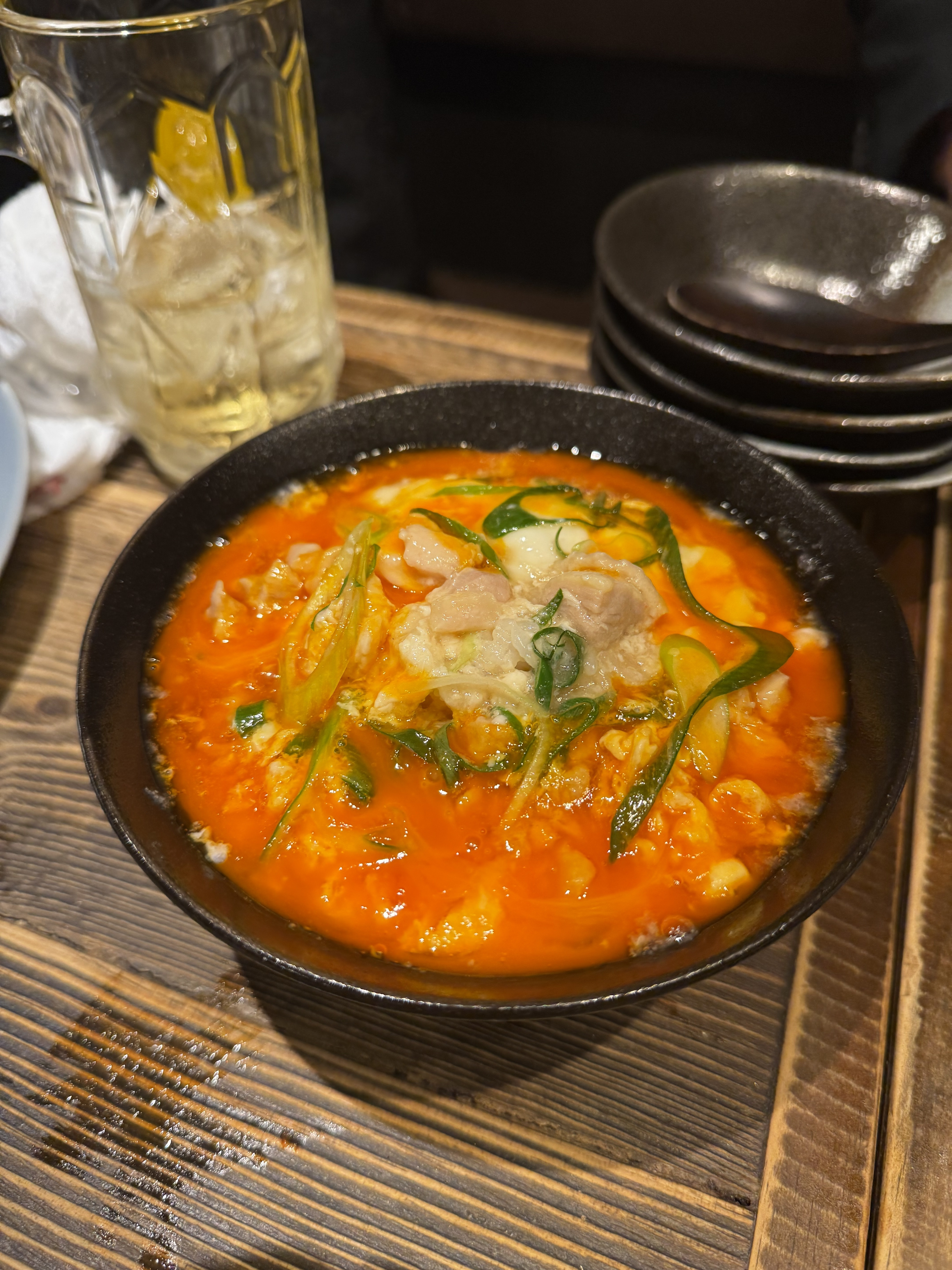 塚田品川で会食。飲める親子丼、略してのめこ丼をサラッと流し込んでみました。絵面のような濃い焦がれてる卵が甘いナイフとしてゆっくりと胃壁を切り裂いていくのを感じられます。