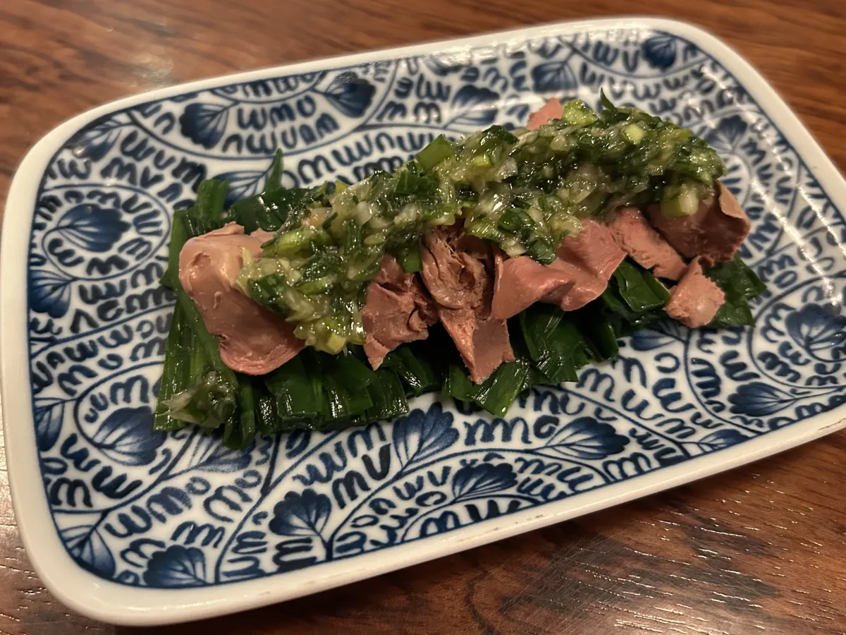 お通しもビールに合わせた地鶏と野菜の………なんだっけ💦