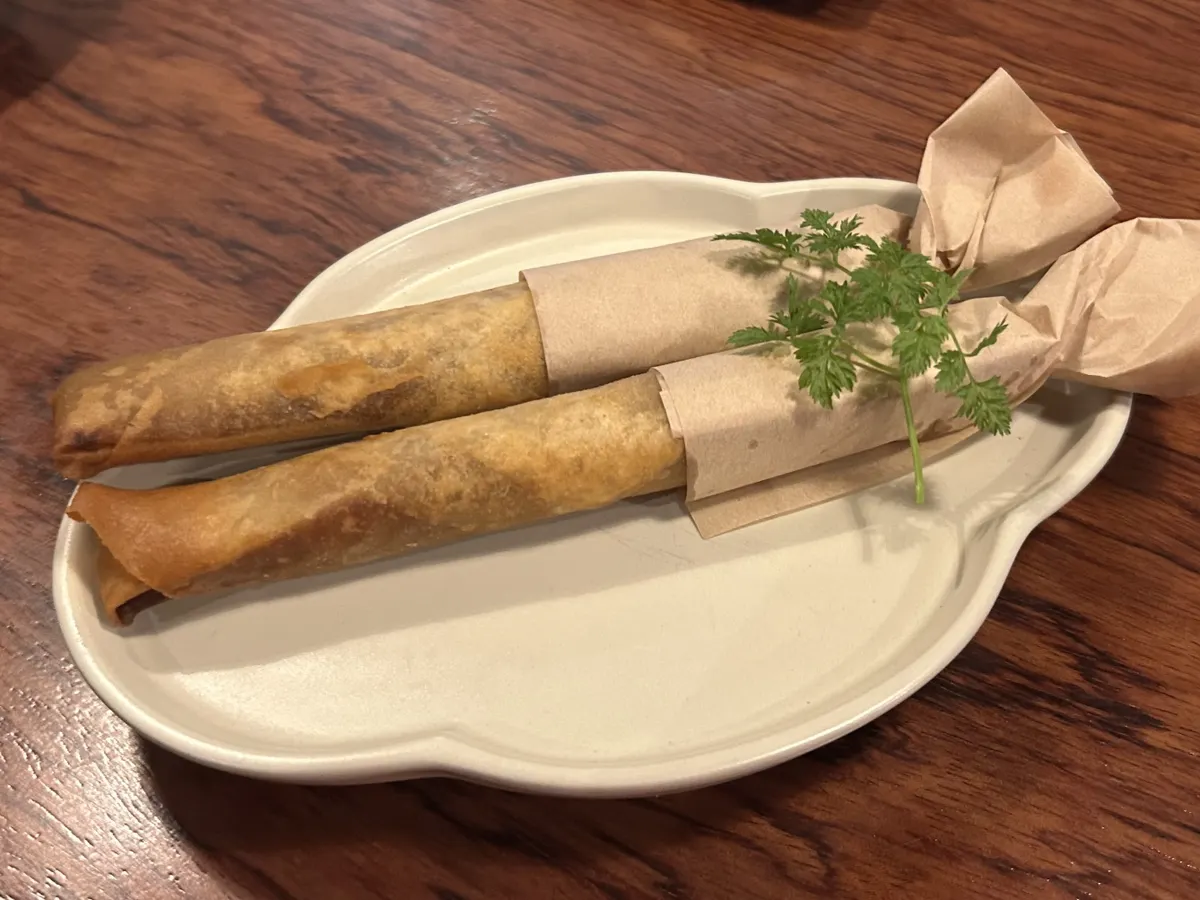 ポルチーニ茸の揚げ春巻きもあの春巻きの味…だけど、細巻?で、熱くても食べやすくいいおつまみ