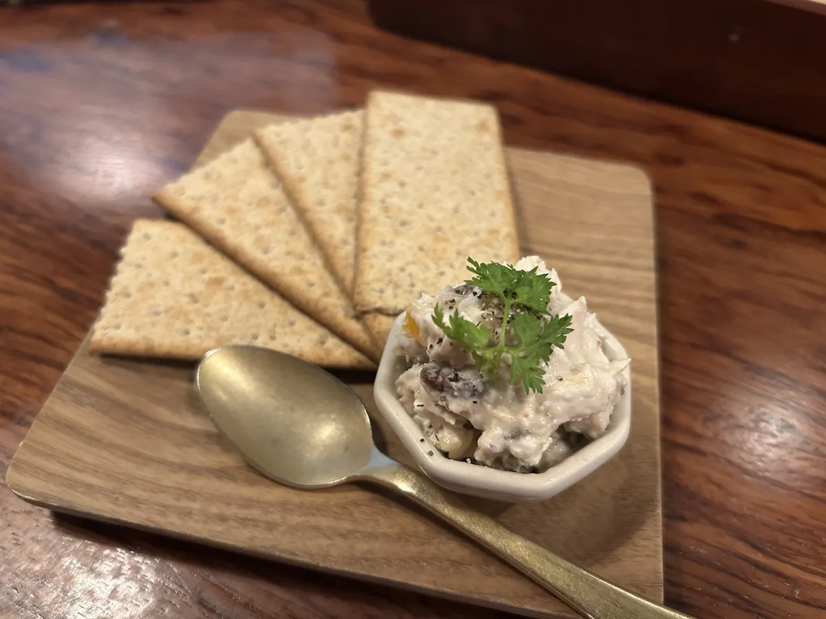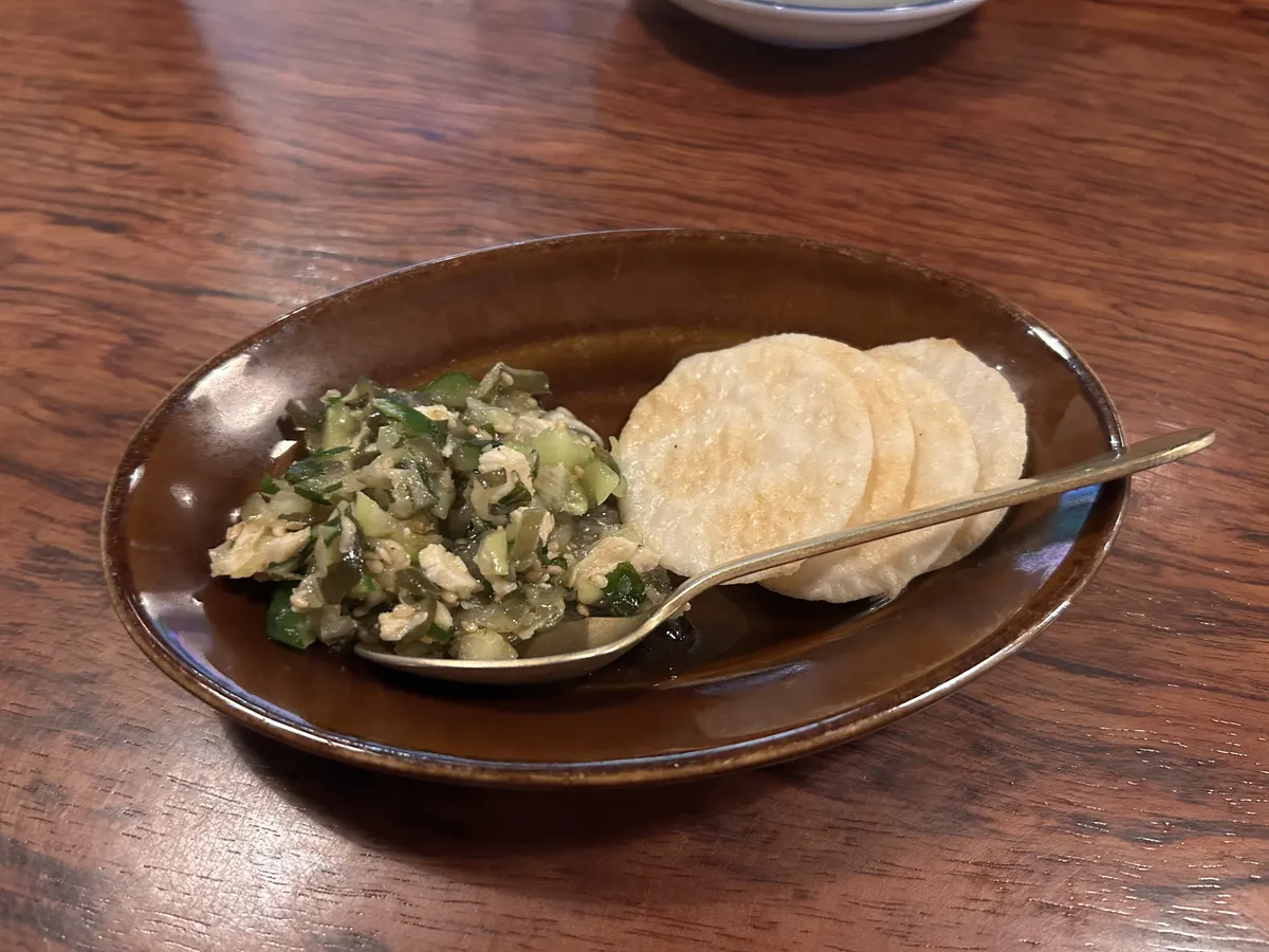 だしっぽいものをせんべいに乗っけて食べるけど、めっちゃビールに合って最高‼️
