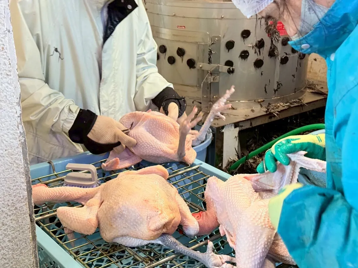 とかち塚田で使用している「新得地鶏」の加工場を見学。