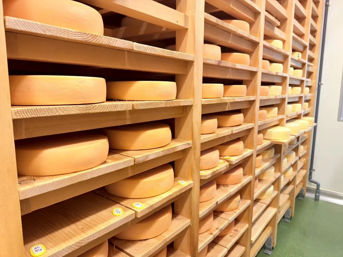ラクレットチーズを磨く工程で十勝川温泉のモール温泉水を使用して