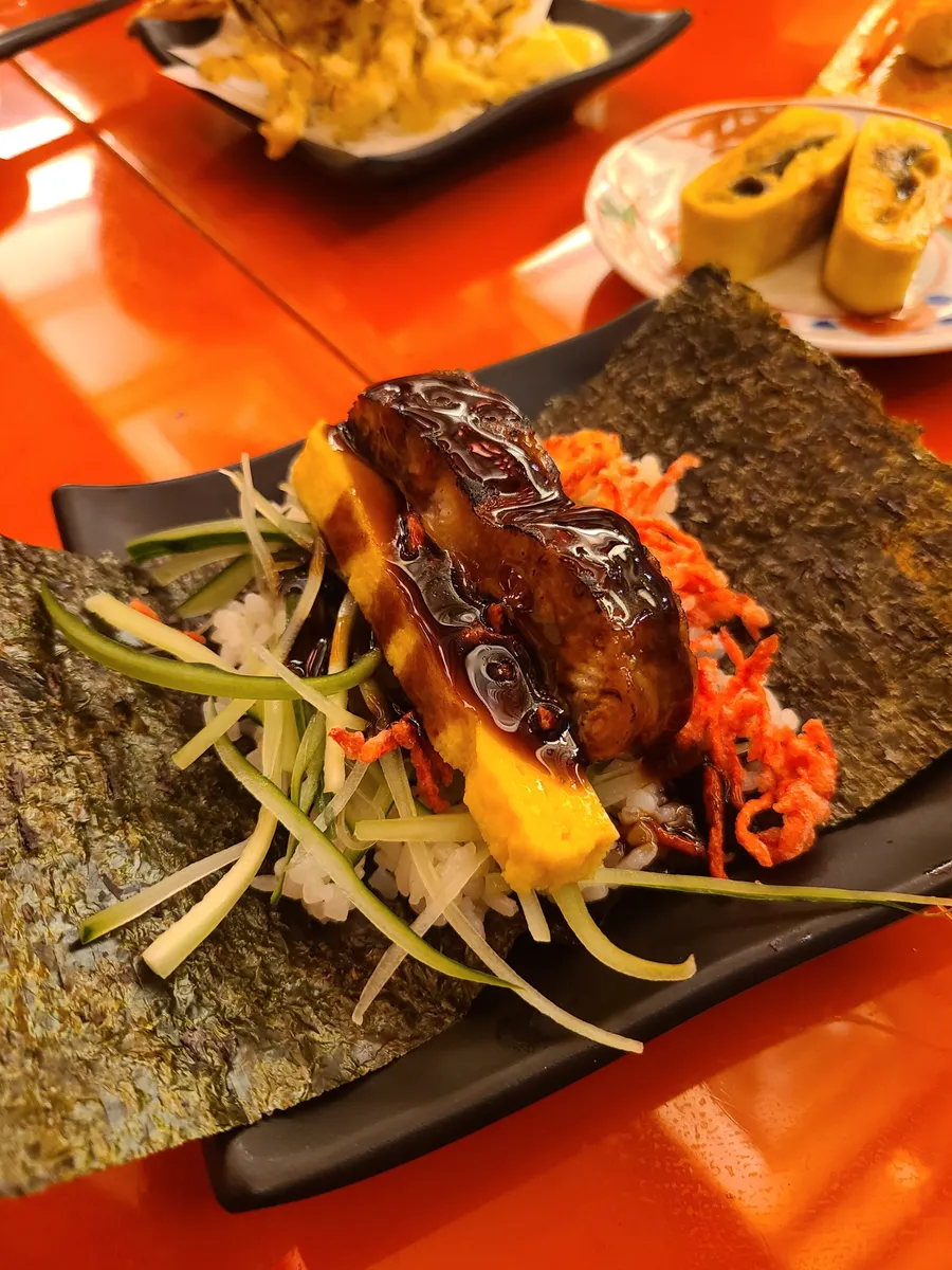 紅しょうが天ぷら、鰻をシャリで包み、とても美味しかったです!