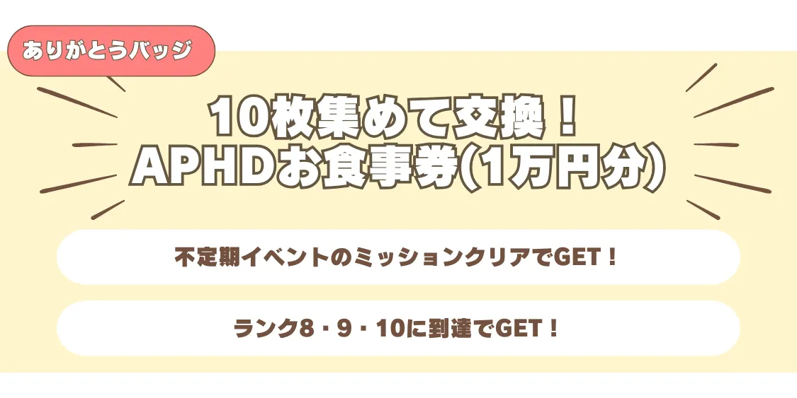 10枚集めると、1万円分のAPHDお食事券に交換可能✨