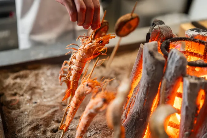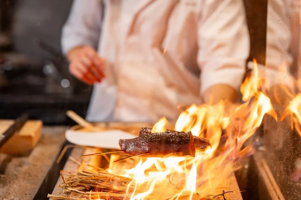 「原始焼き」とは、日本古来から伝わる「遠火で強火」の炭火で魚などをじっくりと焼く、
