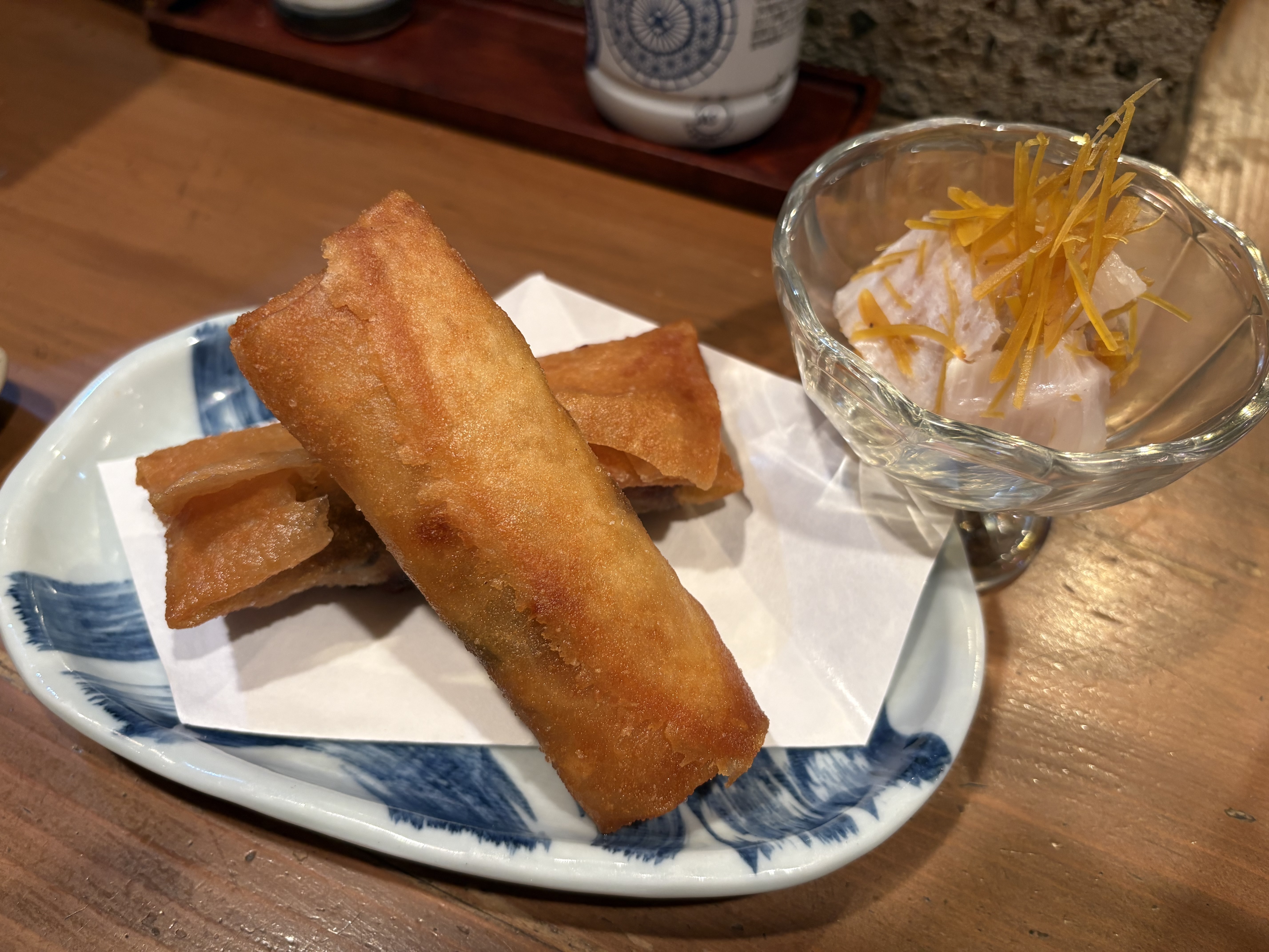 ポテトとチーズの春巻きは、チーズ感が多いうえにちょっとナスも入ってて触感が新鮮 ‼️