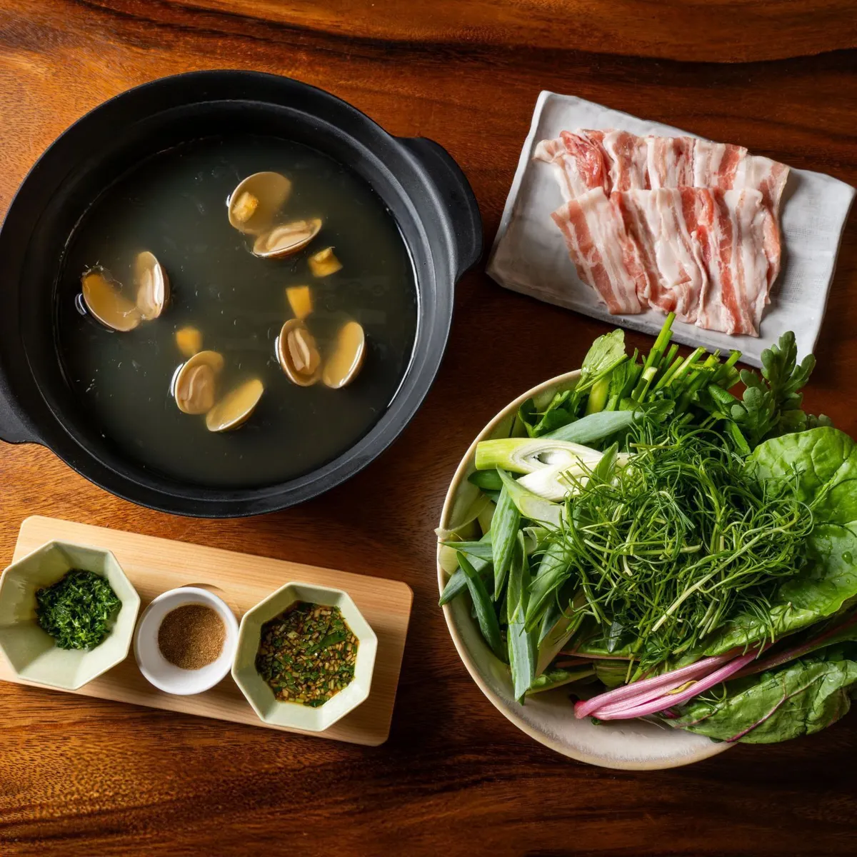 九条ネギ、春菊、せり、ほうれん草、おかひじき、スイスチャードの6種類