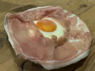 至福の一品 大人のハムエッグ半熟の目玉焼きに生ハム…このままでも醤油を垂らしても日本酒にぴったり…