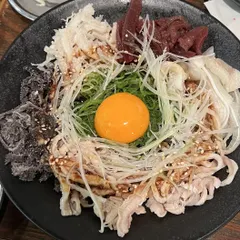 セルフW関根丼 健康診断前だったので、サクッといただきに関根精肉店さんへ。 今回も定番の鉄板焼き大とろホルモンを!本当はもつ鍋かホルモンすき焼きも食べたかったんですが我慢😣 その代わりに前回頼まなかった関根丼をオーダー。すでに味付きのホルモンがいい感じで乗ってますが、そこ
