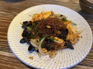 もはや懐かしのチャプチェ 一部のお店で復活している過去メニュー やっぱり大好きなのは辛麺チャプチェ。このもっちり感がたまらない… さらにバラ炭火焼!炭火焼き用丸鉄板にオニスラ敷く感じに進化して、見た目新鮮だけど懐かしい味…そういえば生ホル炭火焼もまた食べたいなぁ… そして大好きだった