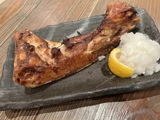 かま 豪快なマグロカマスパイシー焼き。スパイシーというほど香辛料がきいているわけではないが、それが脂ののったマグロの味をちょうどよく引き立たせる一品 さらに新得地鶏のレバーペーストとお通しに出してもらったカツオの青唐たたきで…なんか日本酒たくさん飲んじゃった…