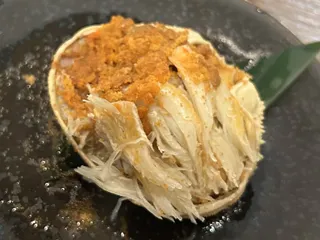 ちょっとだけリッチな気分 ちょっと豪勢にせいこがにむいてくれてるからちびちびと食べれるアテ たまたまあった隠し酒の山城屋との相性もピッタリ‼️さらにクエのお造りや海鮮バクダン、水だこ梅水晶などでお酒をたっぷり。 お通しは…牡蠣あん肝白子ポン酢?