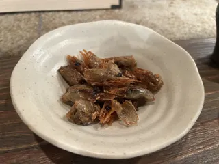 やめられないとまらない… またまた四十八漁場で…イモ色々シーザーサラダは秋を感じる彩り豊かで酸味と甘みのハーモニーもいいし、大船渡産鰹の塩タタキも身がしっかりしてて味わいも豊か、お通しとして出してもらったウスバハギの肝カルパッチョも最高だったけど、このおつまみ甘エビが今日のMVP。甘エビの頭を甘辛く煮たものだけど、これが日本
