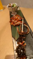 おつまみな甘味 まったりとした濃厚カボチャのプリンまるでふわふわの柔らかさがあるカボチャみたいでめちゃめちゃおいしい!こういう甘味でも辛口の日本酒にぴったり。さらにマカジキの炙り刺しや新生姜甘酢漬けでたっぷり日本酒を… あ、写真撮り忘れたけど今日もヤドカリ出会えました!