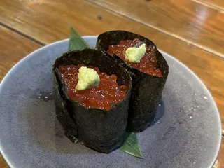 豪勢な…マグロ‼️ いいマグロが入ってるとのことで、ちょっとお願いして マグロの食べ比べ。大トロは炙りで…やっぱり中トロが一番バランスがいいと思いながらも今日は赤身がすごくおいしかった… そしてふくいサーモンのフライ。フライにしてもふわふわ… 貝ひもワサビで箸休め…