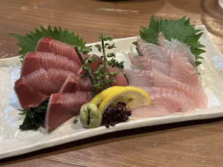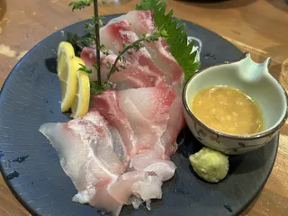 お刺身が食べたくて… またまたイナダ、ふくいサーモン、アイゴの単刺を一皿に!で、なんか豪華な刺し盛やっぱりしっかりだだちゃ豆もつまみながら サワラの幽庵焼き さっぱりとした旬の魚はめちゃめちゃ美味しい‼️お通しはホッケフライのタルタル添え