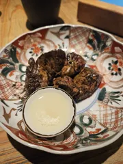 さっぱりと…… 地鶏砂肝と芽キャベツの黄身酢和えなんだか春を感じる彩豊かなお料理。もちろん焼酎にもぴったりそして地鶏手羽とかぶの梅煮もさっぱり! 忘れずに大好きなハツ炭火焼き。プリプリしてて食感も最高! 地鶏刺身盛り合わせや地鶏ぼんじりと筍の筑前煮も