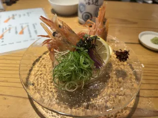 ちょっとおしゃれなあん肝大根 四十八でちょっと一杯。見た目も良いけど大根とあん肝の組み合わせがなかなか日本酒にぴったり!そして赤海老ネギユッケ。こっちはごま油のサッパリ感と、揚げられた頭の香ばし感が楽しめる一品。 たまには海老マヨ巻き寿司も。 お通しはマグロ皮ポン酢。炙られた皮とポン酢