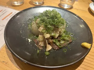 おしゃれに… またバタついてて投稿遅れてますが………おしゃれなマグロほほ肉のステーキおろしポン酢めちゃめちゃ肉々しくてお腹も心も満たされる感じ…そしてブリとしめじのタルタル… 見た目も良いけどそれだけではなく、崩しながらのちびちびつまみとしてお酒のあてに最高!!!お通しは本マグロのウニのっけジュレポン酢