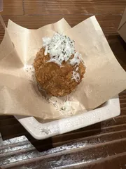 カボチャコロッケ🎃 気になっていたかぼちゃコロッケも美味しくいただきました〜🎃一緒にきた友達もシントク町塚田のメニューがどれも美味しそうって言ってて、名古屋にあればなーって話してました笑