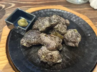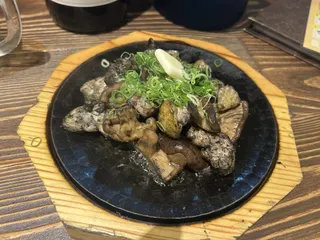 黒さつま鶏炭火焼き🐓 今度はいつものお店で黒さつま鶏さきいか天ぷらも………って、天つゆお願いするの忘れた😅 そして、月見つくねをちょっとたれを別添えに… つくねそのままもおいしいし、月見だれにつけて、いつもの味でも👌