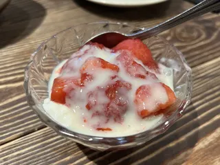 いちご🍓 紅ほっぺのイチゴ練乳杏仁豆腐でさっぱりと 個々の投稿見てて食べたくなっただし巻き玉子も久しぶりに! 鯖ピーやナポリーマンといった春メニューでも春を感じる… 炭火焼きも忘れずに‼️