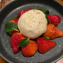 ばえ〜♡ 『苺とブラータチーズのカプレーゼ』ブラータチーズがとってもミルク味で苺と一緒に食べると口の中が苺ミルク味に!見た目もかわいらしく、紅白でめでたい感もあり、映えな1品です♪ おなじみ、お通しの茶碗蒸しですが、寒い外から入ってきての温かく優しい味の茶碗蒸しにホッとします♡(*´∀`)=3 ホッ