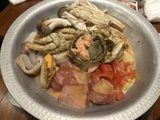くりとま ちょっと食べれてなかったクリトマ鍋。濃厚なトマトスープにクリガニの蟹風味が十分に染み出し、鶏も野菜も海鮮もぴったり!………と、できたら一目散に食べはじめ、できた鍋の写真が💦さらに〆のパスタも細麺で残ったスープによく絡む…