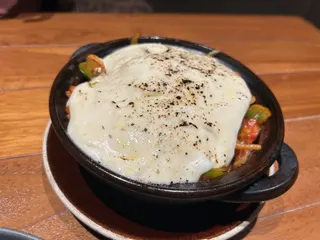 塚だま釜焼き玉子🥚 青唐しらす…結構辛い!そこがいいつまみ! さらにはちみつゴルゴンマッシュポテト 個人的に青カビは苦手だけど…ストップと言われるまでかけ続けてくれるはちみつたっぷりのゴルゴンマッシュポテトは甘さと苦みがマッチしてて最高!さっきの辛さも和らぐ… そしてピザポテトフライ&nb