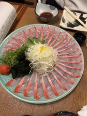 ラグジュアリー金目鯛 金と赤のラグジュアリーな個体は味も料理もプレミアム。刺身、焼き霜ときて、アラで出汁取りのしゃぶしゃぶでお客さんも大喜びでした。雑炊で昇天ご馳走サンキューです。