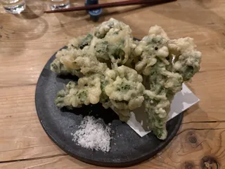 菜の花の天婦羅……… 春が近いなぁ…と思いつつ日本酒は🤪