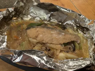 まあまたさっそく… 北海道フェアへ… 秋鮭のちゃんちゃん焼きに蝦夷場以外の旨煮 毎回登場するヤドカリ…お腹のミソは日本酒のアテにピッタリ‼️ ホタテと大ズワイガニ載せ寿司!ホタテとカニの組み合わせって最高!と思って一口でぱくっと食べたら…写真撮ってないことに気づいた