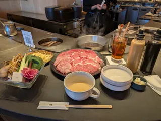 今日のランチ まだYOSENABE全制覇のスタンプが無かったみたいなのでしゃぶしゃぶ塚田ランチしに行ってきました。ハチ公ランチのしゃぶしゃぶを注文お肉の種類の説明はあったけど、お野菜は何が入っているのか説明が無かったのは少し残念です😞お肉も柔らかくて美味しかったし、シメのラーメンも美味しかったです😋 &