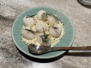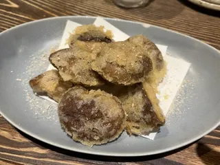 白子🥰 シントクの冬のおすすめ白子のマリネに白子フリット 特に白子に洋風の酸味を合わせるマリネは新感覚‼️フリットのスジノリ塩も風味が😆コーヒー酎にもピッタリ‼️ そしてたまらなくおいしかったのが、とかちピザのクアトロフォルマッジ たっぷりのチーズにはち